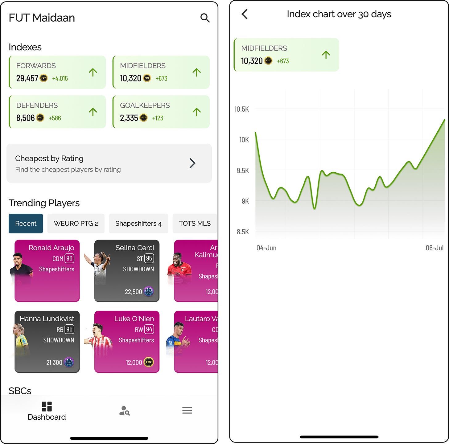 Taking inspiration from stock market indices, I created separate indexes for forwards, midfielders, defenders, and goalkeepers. These indexes tracked market trends in each position, giving players insights no other app provided.