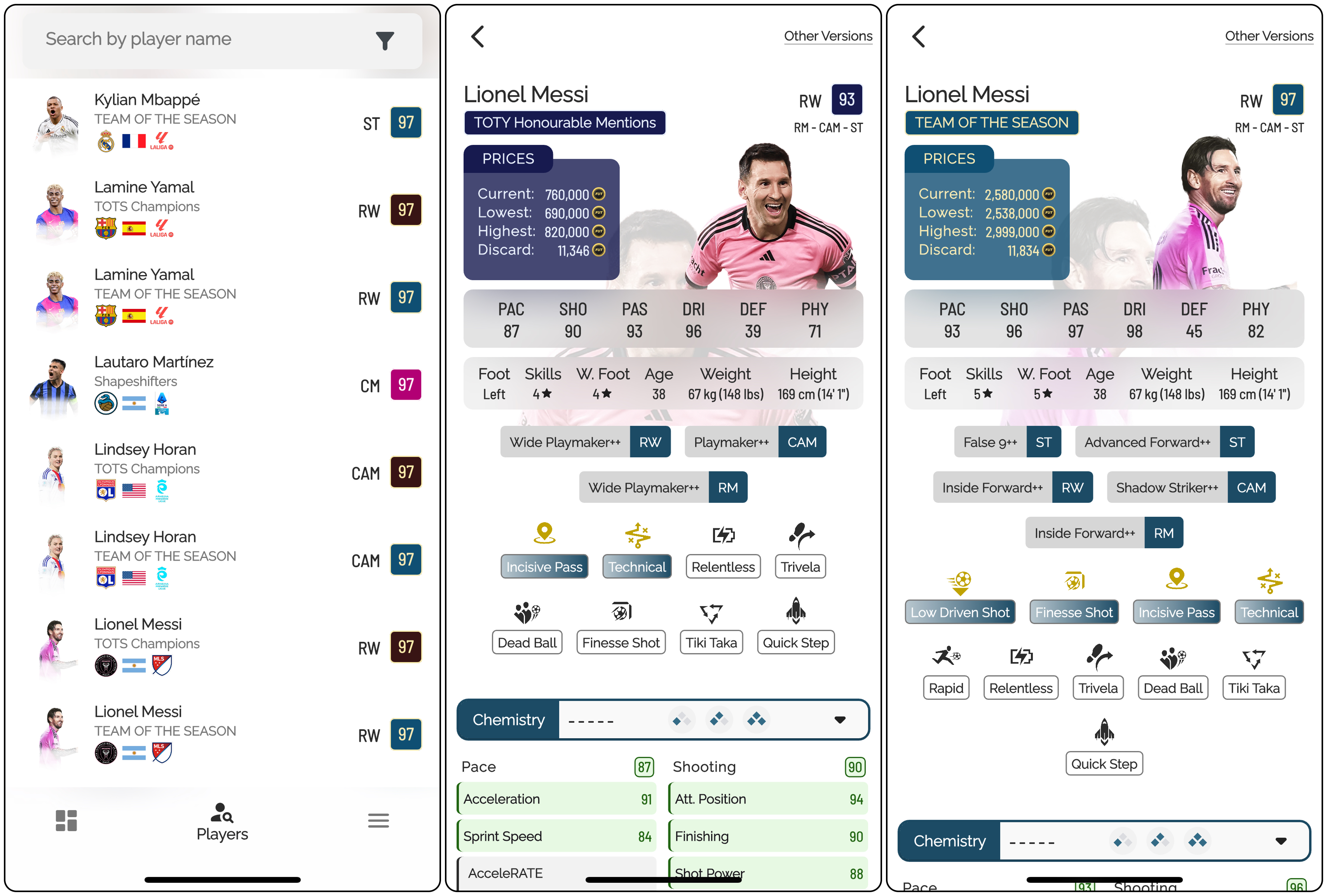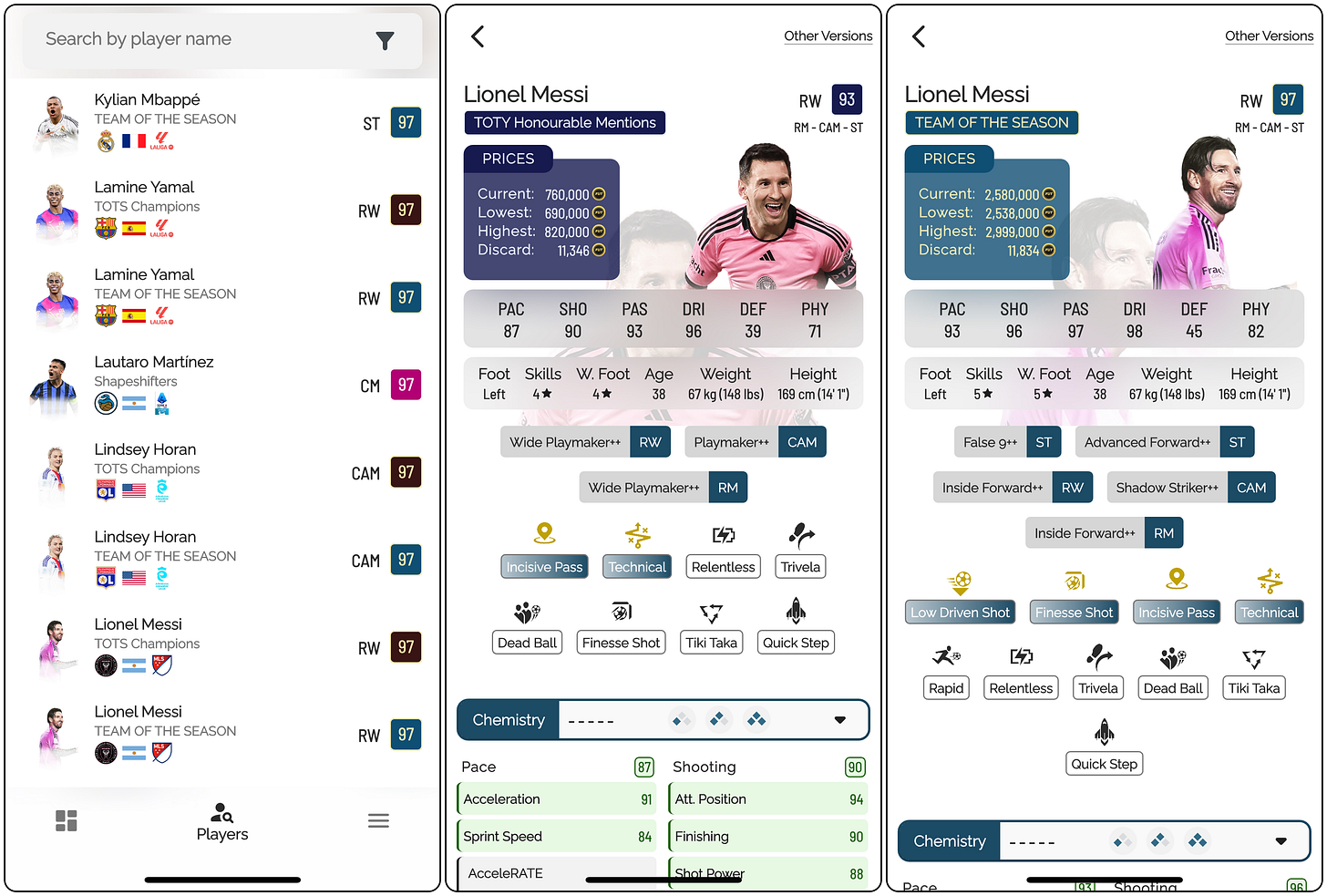 I threw out the traditional FUT card approach entirely. Instead of cramming information into card layouts, I created clean list tiles that displayed all essential information clearly.
