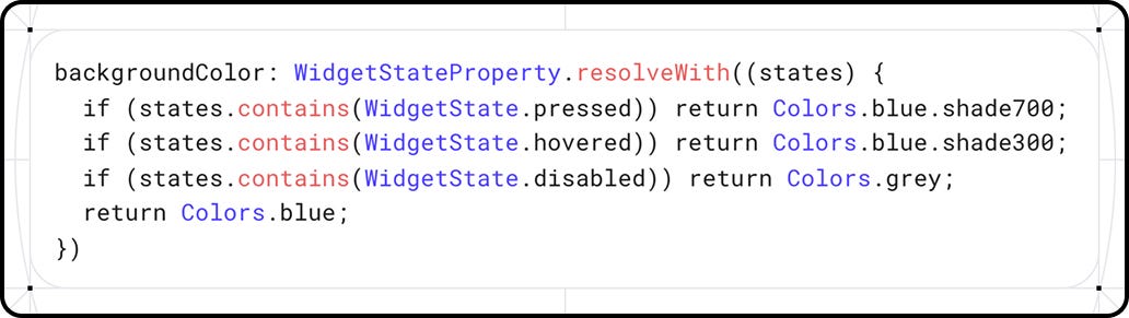 The extra verbosity feels unnecessary when you just want a static color. However, this new approach gives you precise control over every possible state without learning different APIs for different widgets.